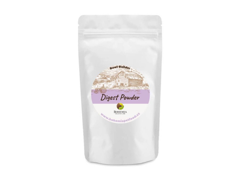 BOHEMIA HOLISTIC Digest Powder (Bowel Builder) vám pomůže „vyladit“ krmnou dávku po chuťové i nutriční stránce. Základem jsou sušené jehněčí dršťky s výrazným aroma, které většina psů miluje – proto se hodí i jako topper pro vybíravé jedlíky.