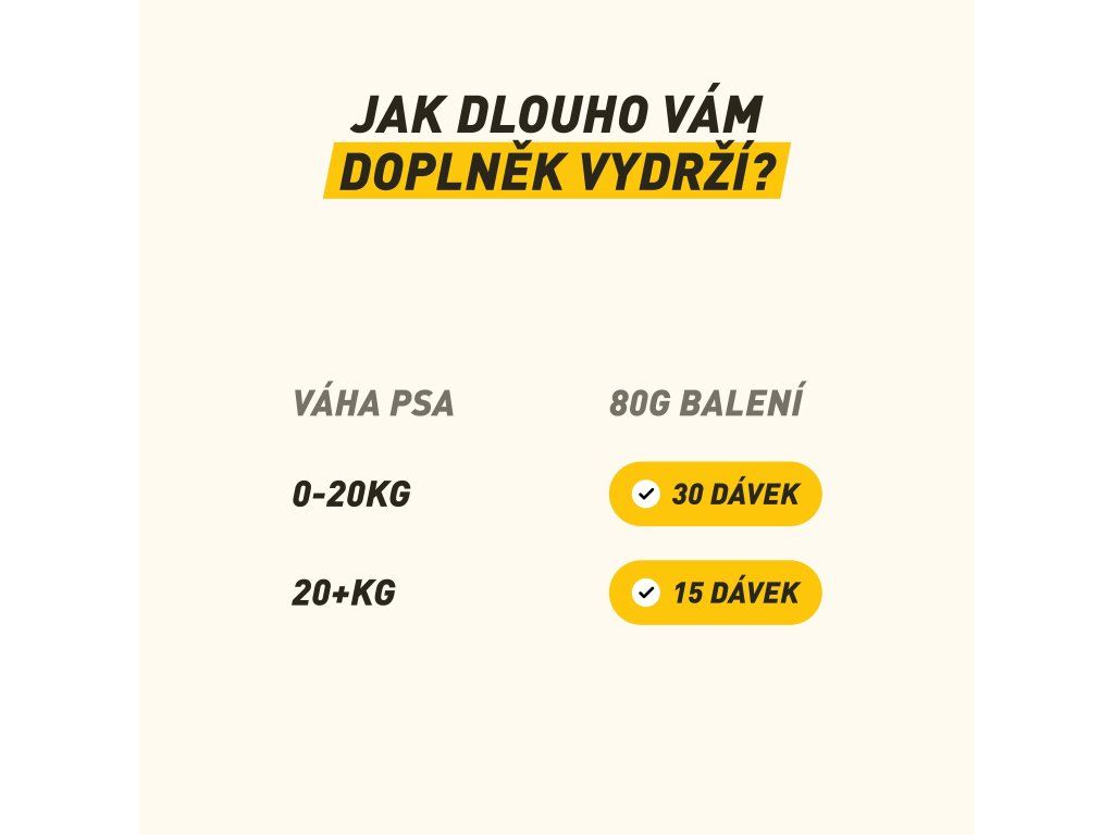 - Jak dlouho balení vydrží: pro průměrného psa přibližně 2 měsíce.