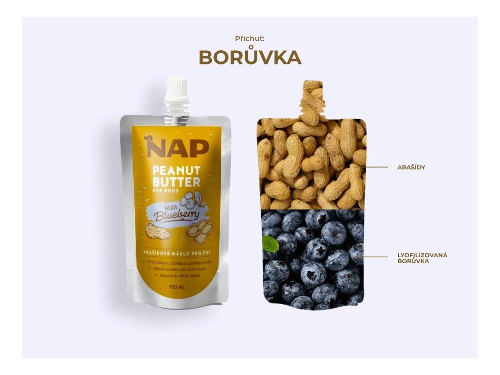 NAP Arašídové máslo pro psy - borůvka Podpora energie
