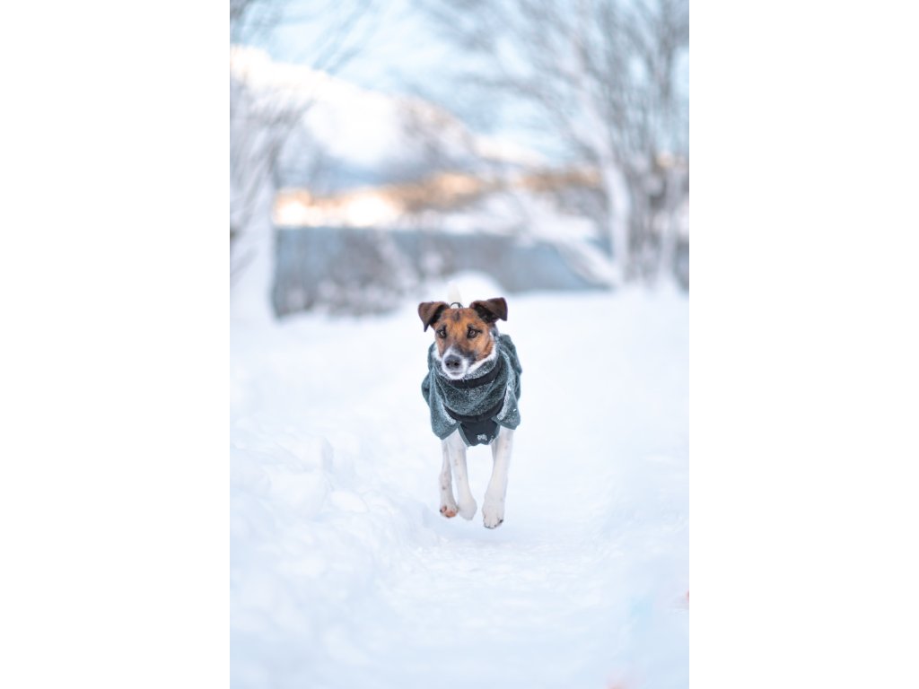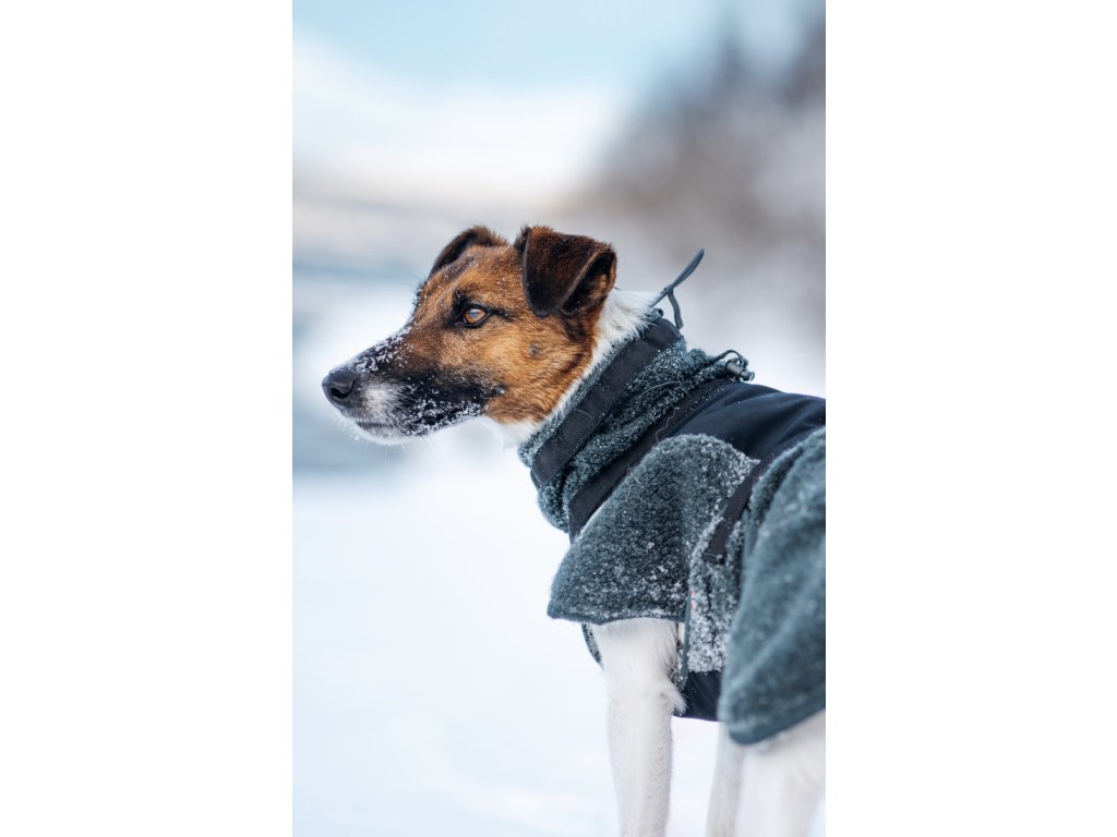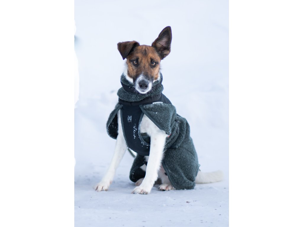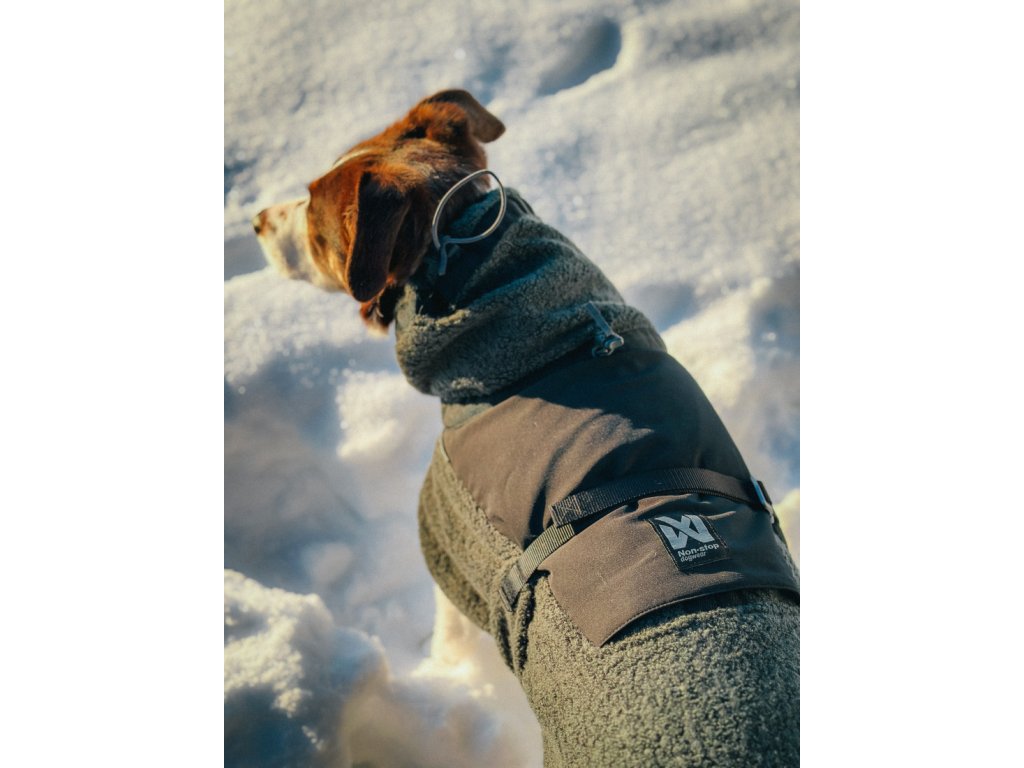 Wool Dog Jacket od Non-stop dogwear je odolná merino bunda pro psy, navržená pro zahřátí velkých svalových skupin před/po aktivitě i během ní. Směs merino vlny a syntetiky hřeje, reguluje teplotu, dýchá a omezuje zápach; zesílení softshellem zvyšuje životnost. Bunda je vícebodově nastavitelná, má gumičky na zadní nohy, reflexní detaily a hliníkovou sponu.