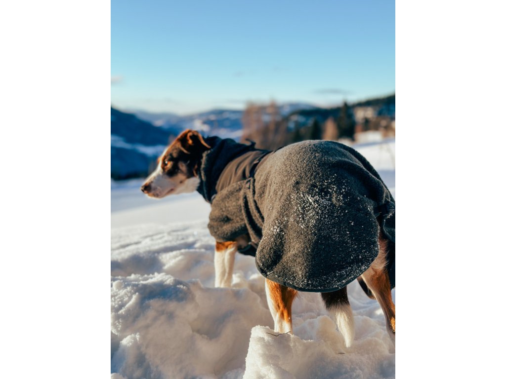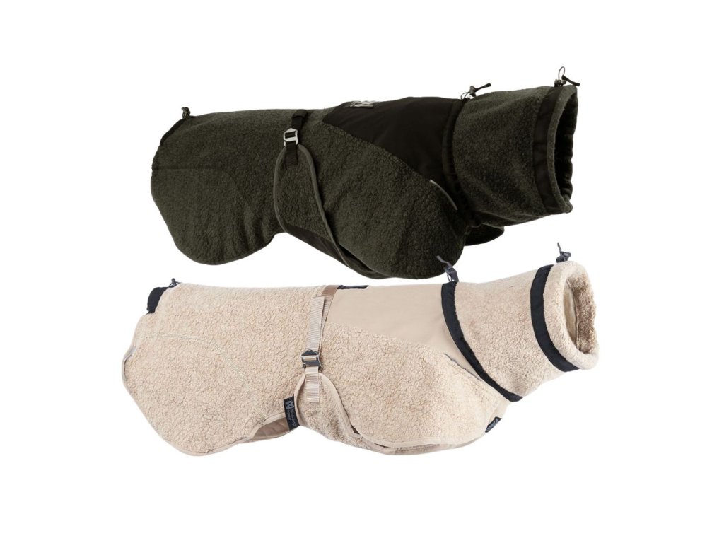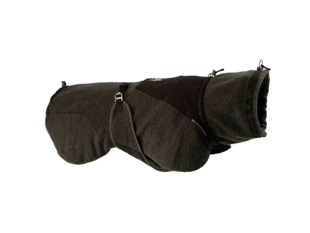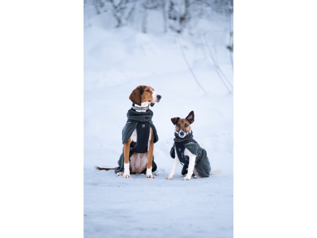 Wool Dog Jacket od Non-stop dogwear je odolná merino bunda pro psy, navržená pro zahřátí velkých svalových skupin před/po aktivitě i během ní. Směs merino vlny a syntetiky hřeje, reguluje teplotu, dýchá a omezuje zápach; zesílení softshellem zvyšuje životnost. Bunda je vícebodově nastavitelná, má gumičky na zadní nohy, reflexní detaily a hliníkovou sponu.