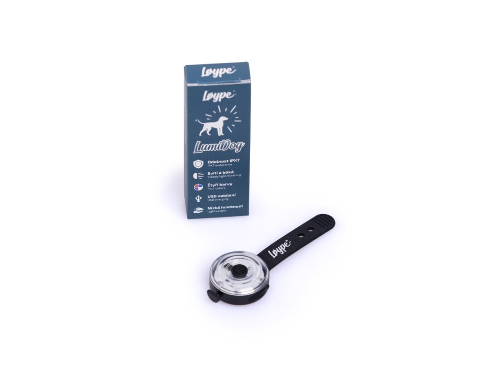Světlo na obojek LumiDog od Løype je dobíjecí LED světýlko s IPX7 vodotěsností, 2 režimy (stálé / blikání) a 4 barvami pro skvělou viditelnost psa za šera, v dešti i v lese. Váží jen 16 g, na jedno nabití vydrží až 48 hodin a za cca 1,5 h je znovu plné přes USB-A/USB-C. Gumová páska bezpečně sedne na většinu obojků i postrojů.