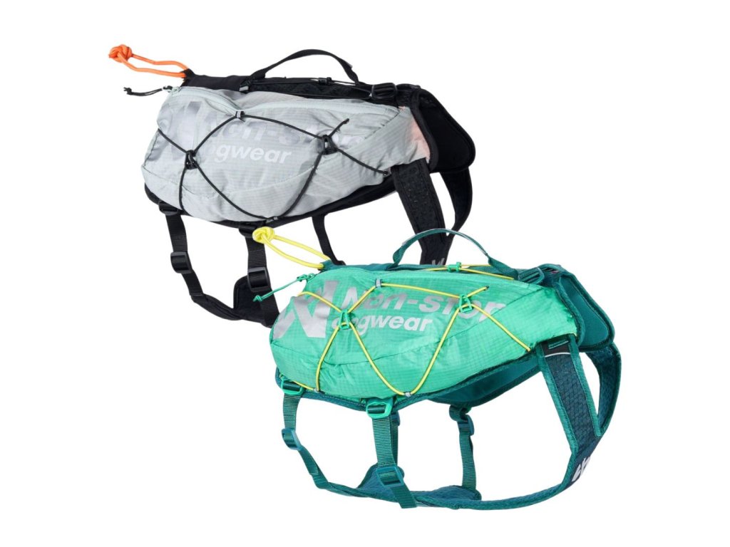 Non-stop dogwear je norská značka vybavení pro aktivní psy a jejich lidi, postavená na ergonomii a materiálových technologiích. Jejich produkty využívají např. HexiVent – trojvrstvý, vysoce prodyšný materiál (voštinová síťovina + perforovaná pěna + jemná síťka) pro skvělý odvod tepla, ideální do tepla a při vysoké zátěži. Dále Freemotion tech™, konstrukční přístup k postrojům, který uvolňuje ramena, rovnoměrně rozkládá tah a minimalizuje omezení dýchání při tahu (canicross, bikejöring, skijöring). U psích bund a pláštěnek značka používá voděodolné prodyšné membrány (např. 15 000 mm vodní sloupec na svrchní vrstvě). Vybavení doplňují odolné detaily jako hliníkové D-kroužky a vícebodové uchycení vodítka pro různou míru tahu/kontroly.