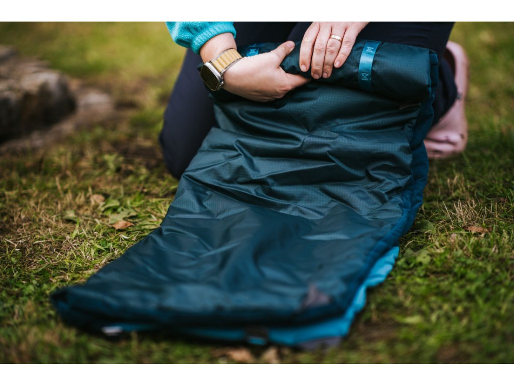 Když jste připraveni opustit tábořiště, rychle a snadno se sroluje a zajistí pomocí dvojitého popruhového systému a kovových přezek. Vejde se do vašeho batohu nebo ji lze připevnit karabinou (není součástí balení) pomocí popruhového systému.